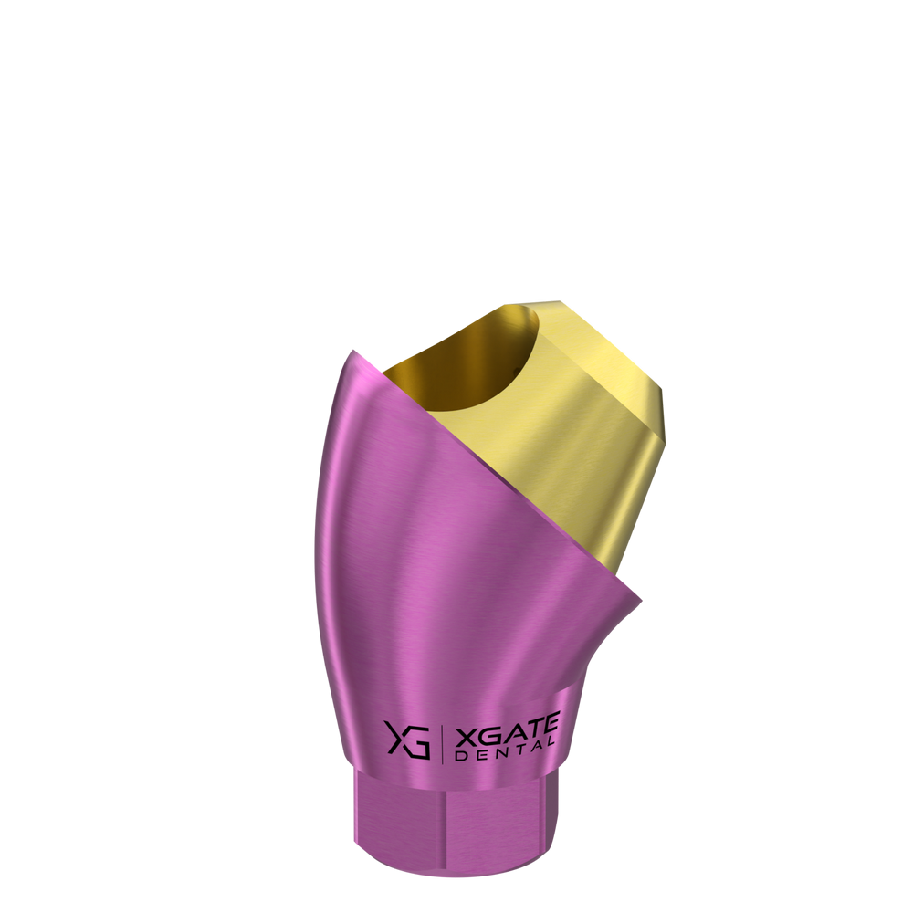 To compensate for the pronounced implant angulation and to align the screw access channel with the occlusal plane, a 45° angled abutment from the XGATE Dental product line (Germany) was selected. This abutment facilitated proper prosthetic positioning while maintaining optimal load distribution.