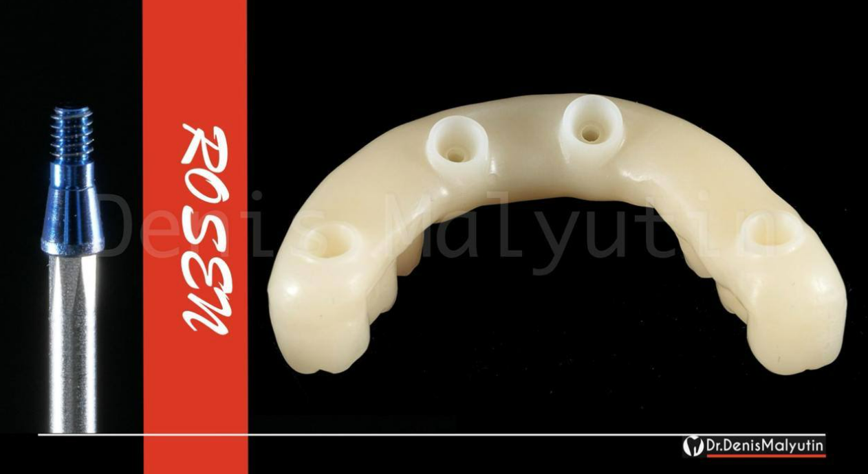 It is important to note that Rosen conical screws were used for prosthesis retention. The design of these screws allows for secure fixation without the need for additional bushings, ensuring a stable and precise connection between the prosthesis and the abutments.