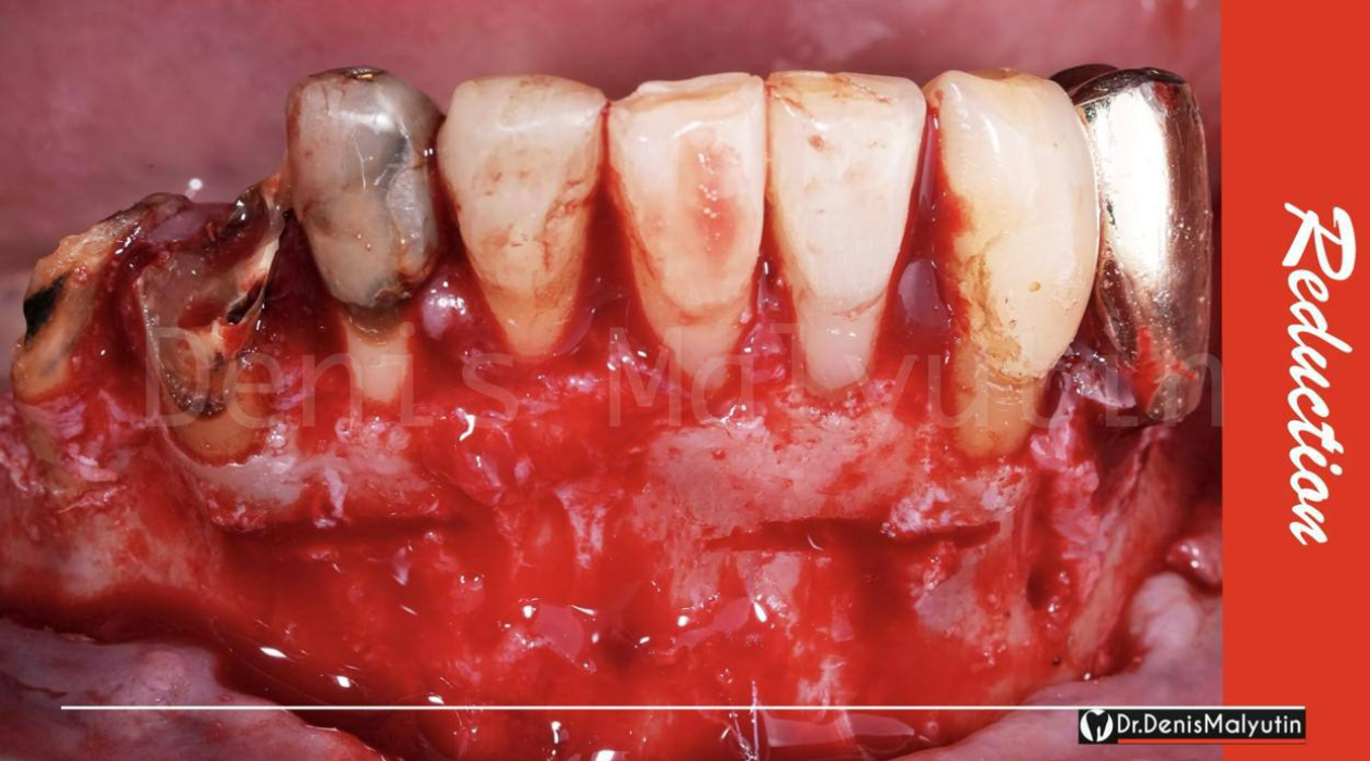 - Surgical reduction of the alveolar ridge to establish a level and predictable bone foundation.