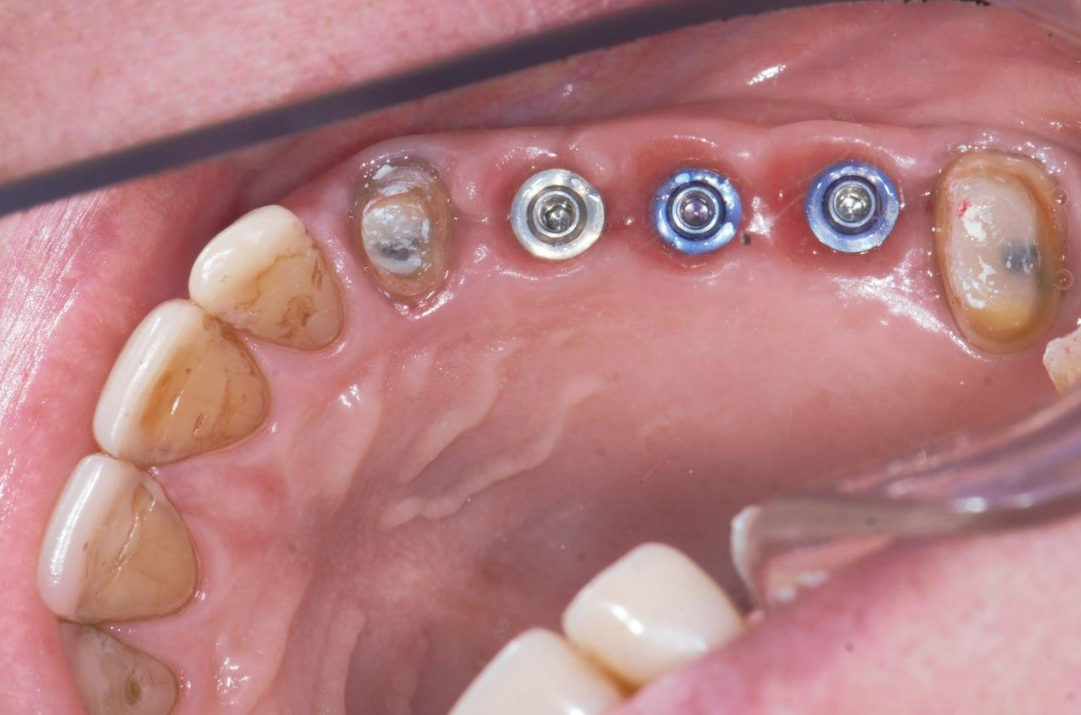 A digital protocol was utilized for surgical planning and prosthesis fabrication. This approach enabled a superior aesthetic result and ensured a tight soft tissue seal against the prosthesis surface — a result that would have been difficult to achieve without XGATE V-Type multi-unit abutments.