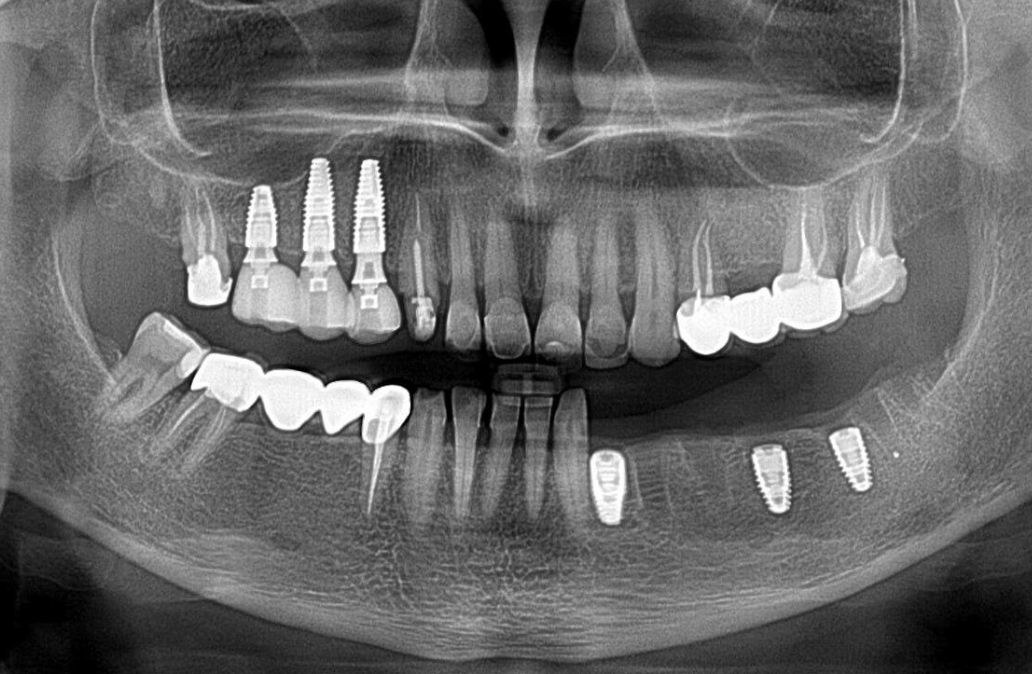 This clinical case is of interest due to the elegant solution that allowed for the preservation of vital tooth roots and the restoration of the dentition using a screw-retained prosthesis.