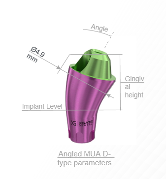 The illustration below shows the design of the D-type angled abutment from XGate Dental.