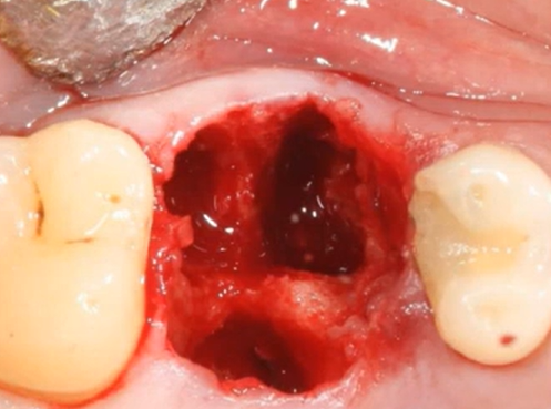 An example of a socket from an extracted tooth with an inter-root septum where the implant will be placed. YouTube/ Dr. Sergey Rozhnov /sergiodontolog