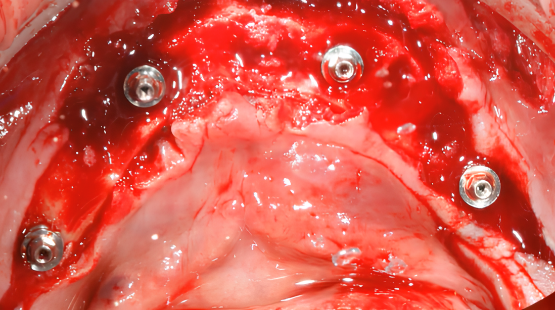 In this scenario, achieving both primary and secondary stability is difficult. While secondary stability may be sufficient when replacing a small bridge using a two-stage protocol, it is not so with a full arch 4/6.