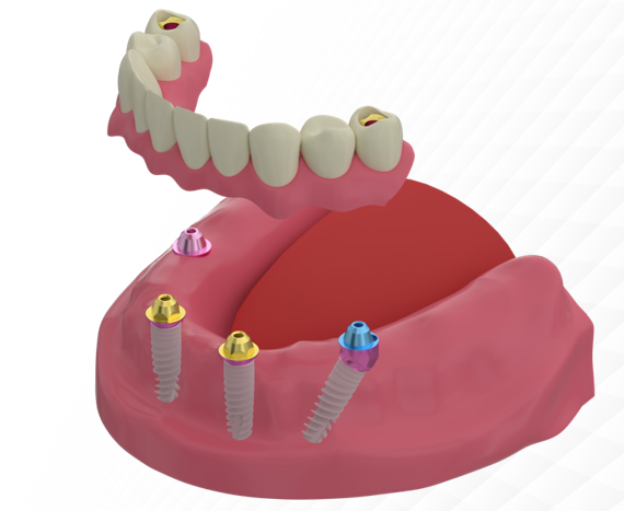 - Rules for implant positioning in the lower jaw. Unless there are special conditions or restrictions, the Full Arch on 4 design typically places implants in the 3 and 6 tooth positions, while maintaining occlusion keys.