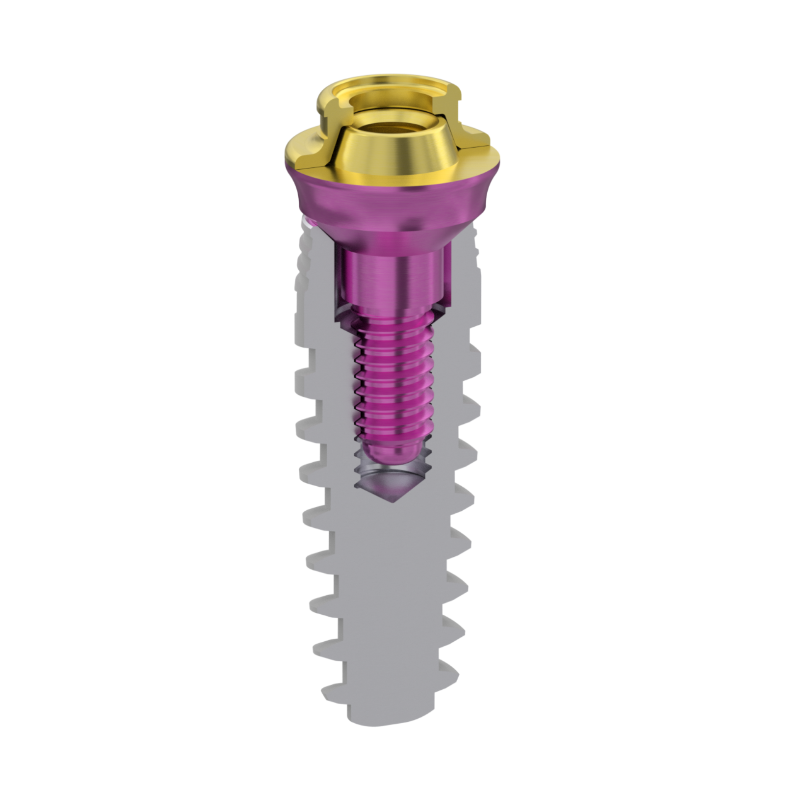XGate Dental implant with conical interface in cross-section – multi-unit V-type abutment shown as an example.