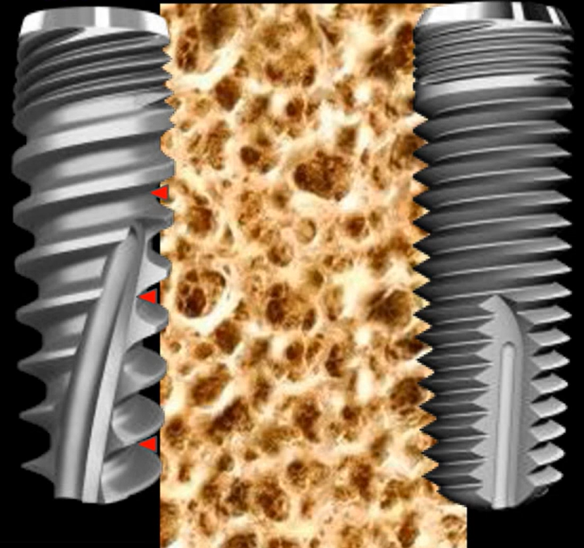 In the previous section, we discussed thread shape and bone density. The key point is conical implants with wide, aggressive threads for low-density D3-D4 bone, and cylindrical implants with fine, smooth threads for dense D1-D2 bone. However, not every dentist is willing to order highly specialized implants when there is a way to place standard ones without compromising stability.