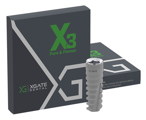 X3 PURE & POROUS Pure & Porous modification of dental implant`s surface unites the well-known advantages of RBM* and SLA** types of the surface (highly developed porosity for SLA and high surface cleanness for RBM), and is free from their drawbacks (occasional remains of blasting particles for SLA, and is not well structured surface topography for RBM).CleanlinessPorosity**SLA is Alumina (or Sand) Blasted, Large-grit, Acid-etched surface of dental implants, pioneered by Strauman.*RBM is a dental implants surface treated by Resorbable Blasted Media (Hydroxyapatite and other Calcium Phosphates) following by light acid washing, pioneered by Lifecore.keyboard_arrow_downCleanlinessPorosityCOronal part Greater surface area Better load distribution Less crestal resorption Decreased crestal stressDESIGN FEATURESAdvantagesMicro rings Bone platform shifting Rough surface to the topInternal Hex Perfect implant-abutment connection Precision restoration process No micro movements, less bone lossDESIGN FEATURESAdvantagesExtremely precise internal hex One platform for all diameterskeyboard_arrow_downApical PartHelps to prevent damage of anatomical structuresDESIGN FEATURESAdvantagesNarrow body Sharp threads Two spiral channels Condensing tapper Domed apexImplant Body & ThreadsTapered body with dual thread of 2 mm Highly expressed conical core Osteotomy like condensing body Threads become thinner in the apical directionDESIGN FEATURESAdvantagesCoronal-thick square threads Central part-thinner square threads Apical-V shape threadsVARIABLE THREADS DESIGNHigh primary stability Bone condensing & Easy insertion Self-drilling & Self-tappingkeyboard_arrow_downOrdering informationContact usHead Office: XGate Dental Group GmbH Falkensteiner Straße 77 60322 Frankfurt am Main, Germany E-mail: [email protected]