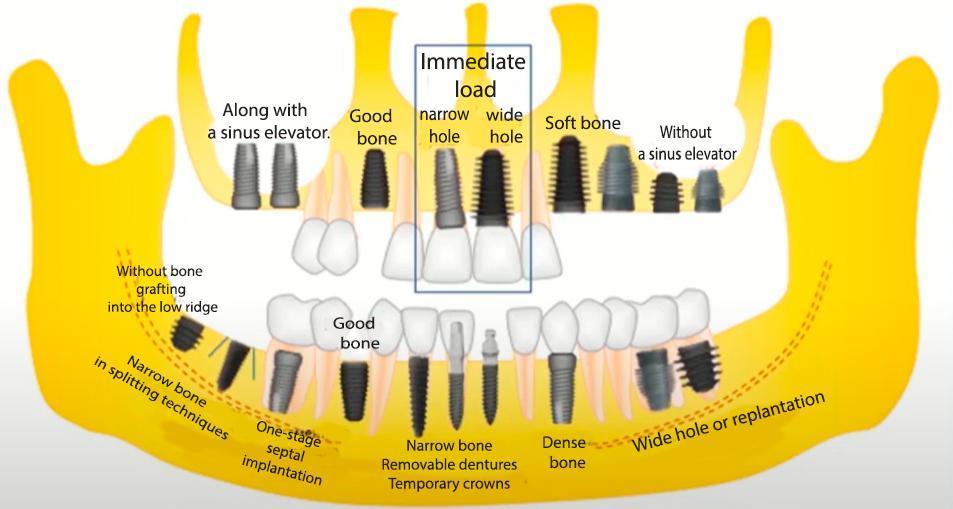 The illustration below shows a treatment plan using implants specialized for different bone types.