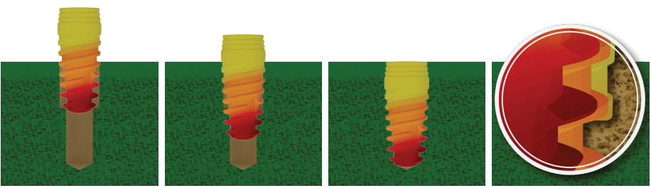 Visual Analogy: A screw with a medium-depth thread in softer wood. YouTube / Dr. Kamil Khabiev / Dental Guru Academy