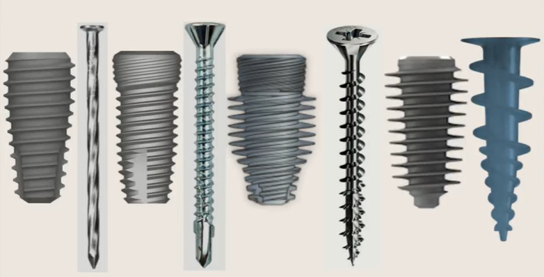 Visual analogy between different construction fasteners and dental implants for various bone densities. YouTube / Dr. Kamil Khabiev / Dental Guru Academy